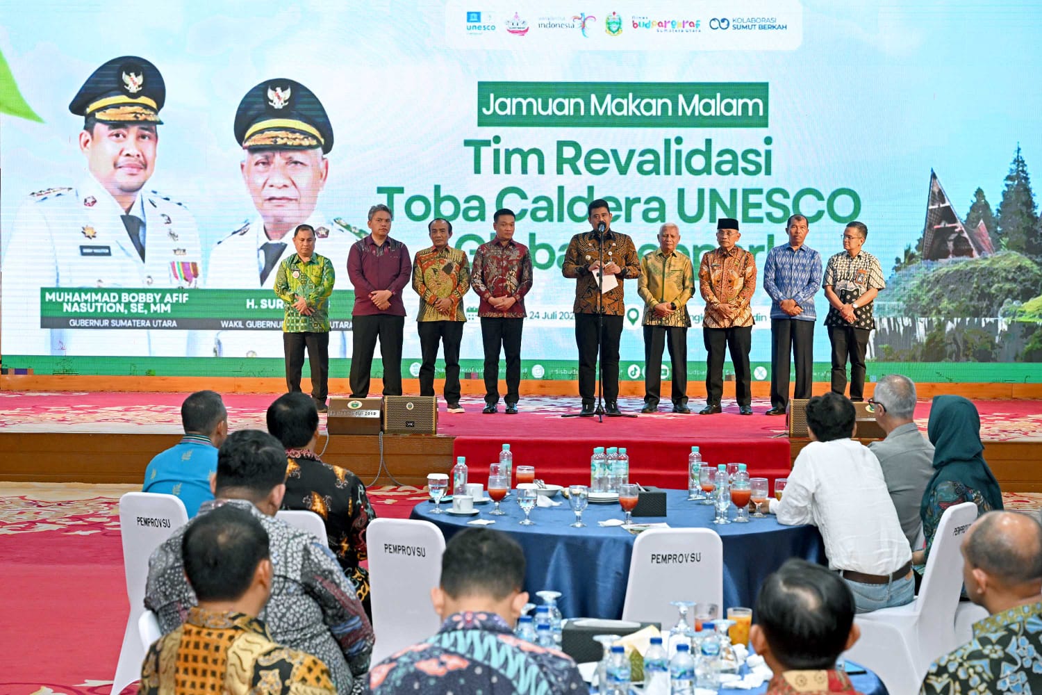 “Mudah-mudahan optimis, kita sudah buat kegiatan dari tingkat kabupaten ke provinsi, hingga proses pengajuan ke tingkat internasional,” kata Bobby Nasution, usai menjamu makan malam asesor UNESCO Geopark Kaldera Toba Dr Jeon Yongmun dan Prof Jose Brilha di Aula Tengku Rizal Nurdin, Rumah Dinas Gubernur, Jalan Sudirman 41, Medan, Kamis (24/7) malam.